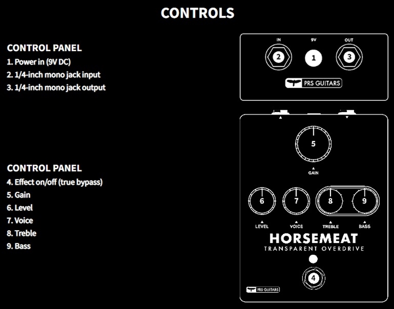 PRS Horsemeatトランスペアレント・オーバードライブは、ギターのサウンドを変に色付けせず、その楽器が持つサウンド素直に押し出すことをコンセプトに回路のデザイン・設計が行われました。