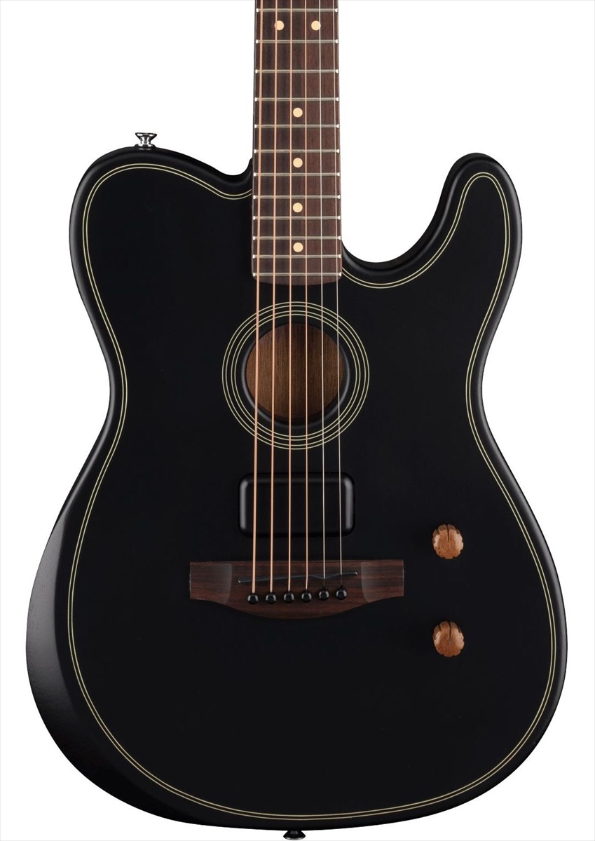 ブレイシングされたソリッドシトカスプルーストップ、フルチェンバー構造のボディ、革新的なFenderとFishman共同設計のアナログエレクトロニクス、ボリュームコントロール、マグネティックとピエゾの2種類のピックアップのブレンドコントロール、そしてFenderのアイコンとして親しまれている演奏性を備えたこのTelecasterは、Acoustasonicシリーズのパフォーマンスを手軽に体験できるエッセンスを備えています。