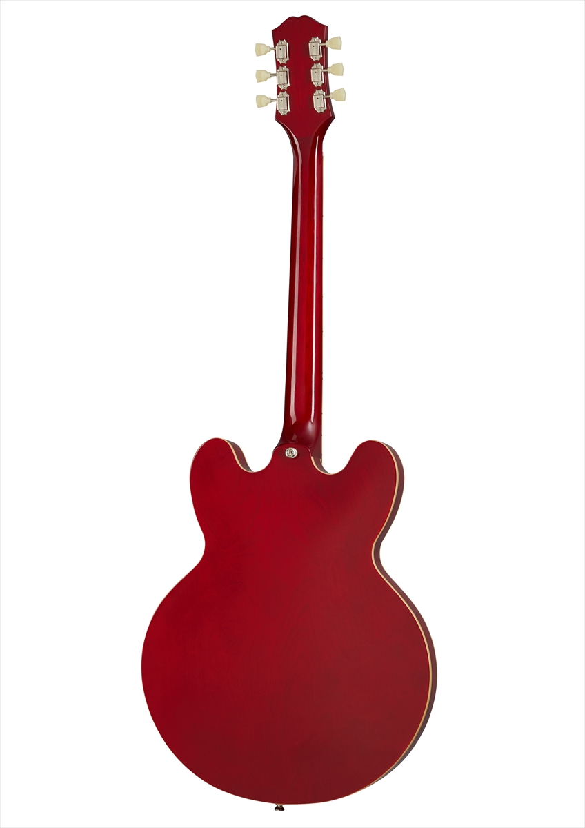 エピフォンES-335は、トップ・バック・サイドに合板メイプルが使用され、ソリッド・メイプルのセンターブロックと相まって、セミホロウ・ギターに求められる驚くほどのサスティン、暖かさ、そして共鳴するトーンを生み出します。
