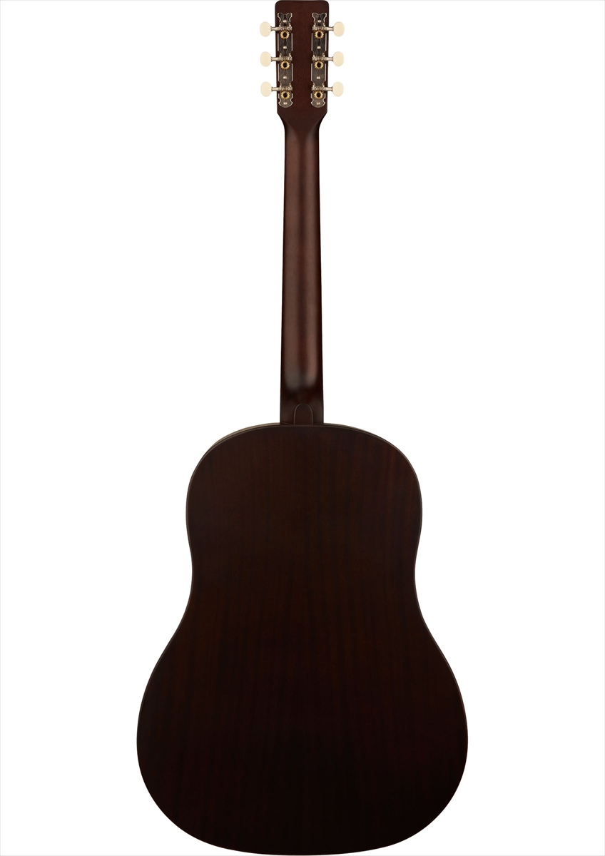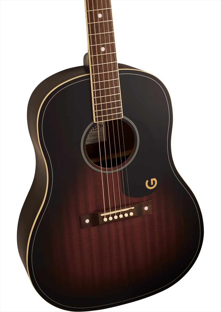 Xブレーシングを施したボディには厳選された軽量ラミネート材を使用し、ウッディなヴィンテージトーンと耐久性を最適なバランスで実現しています。ヴィンテージスタイルのピンブリッジ、"G"グラフィック入りピックガード、ペイントされたピンストライプパーフリング、"3-on-a-plate"オープンギアチューニングマシン、オーバーサイズドットインレイなど、当時の仕様に忠実なディテールがノスタルジックな個性を醸し出します。
