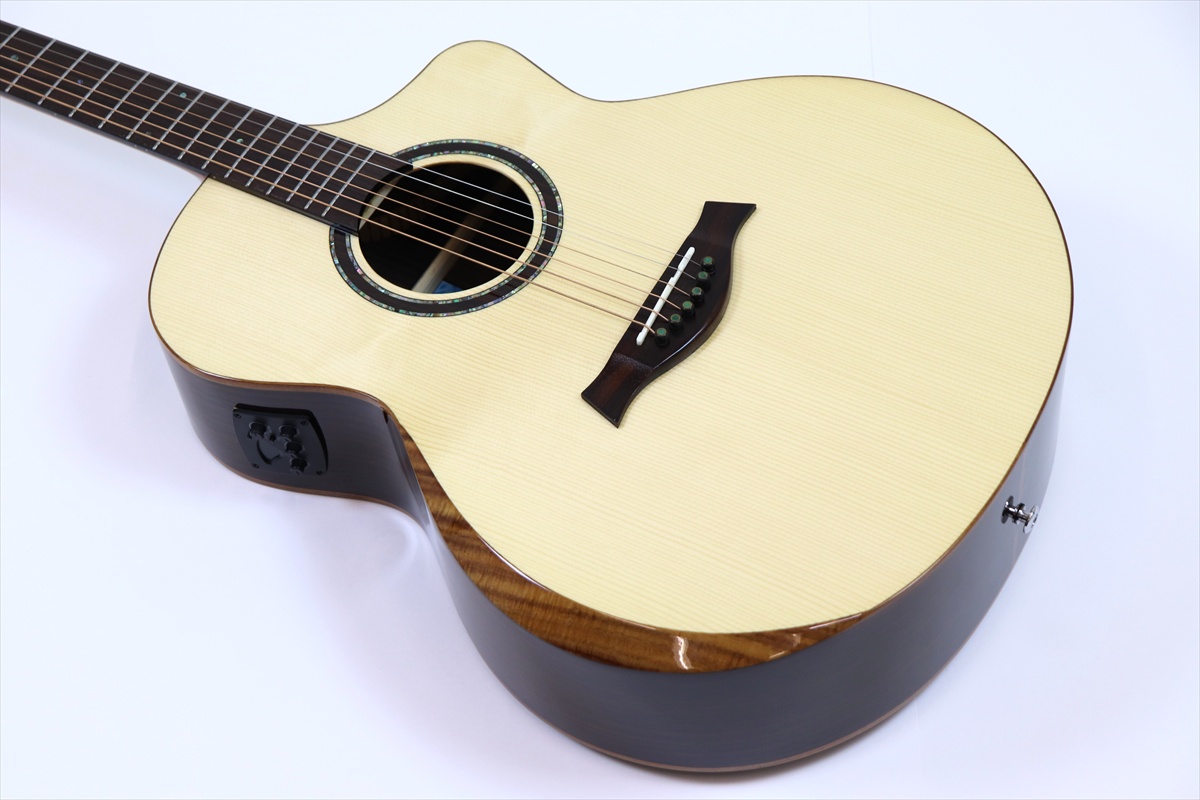 カッタウェイボディ&オリジナルPUを備えたエレアコ仕様で、初めての1本からステージユースまで対応。