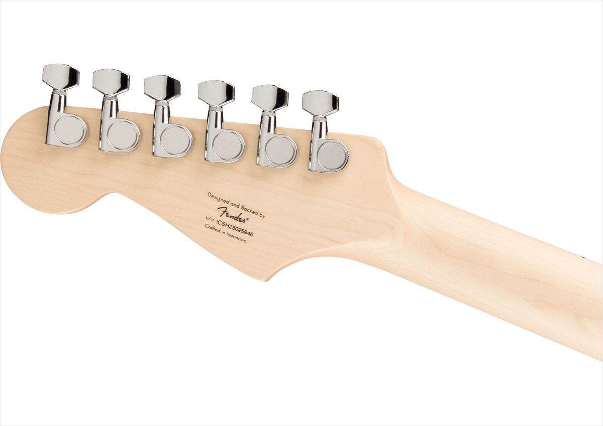 このストラトキャスターは、薄く軽量なボディと、スリムで快適な"C"シェイプネックの組み合わせにより、優れた演奏性をもたらします。1基のSquierハムバッキングブリッジピックアップは、パワフルなトーンを奏でます。